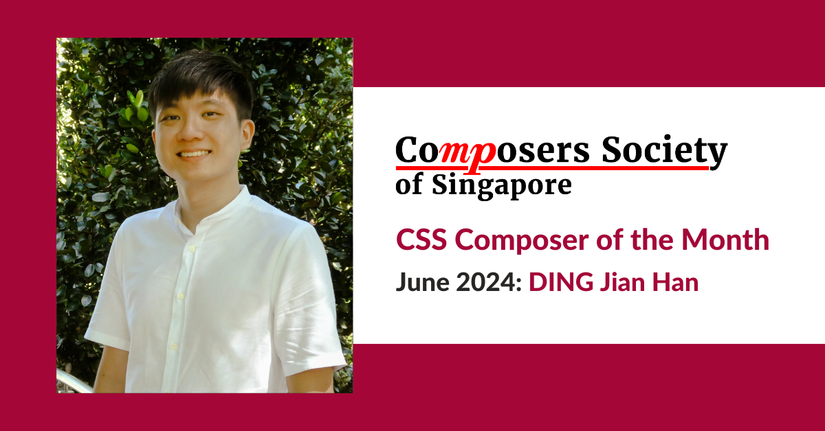 Since 2020, the Composers Society of Singapore (CSS) has been releasing a monthly series for our Musings section, Composer of the Month! The Composer of the Month for June 2024 is DING Jian Han.